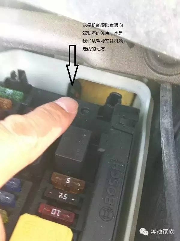 找到機(jī)艙保險(xiǎn)盒,正對(duì)車頭的右上角
