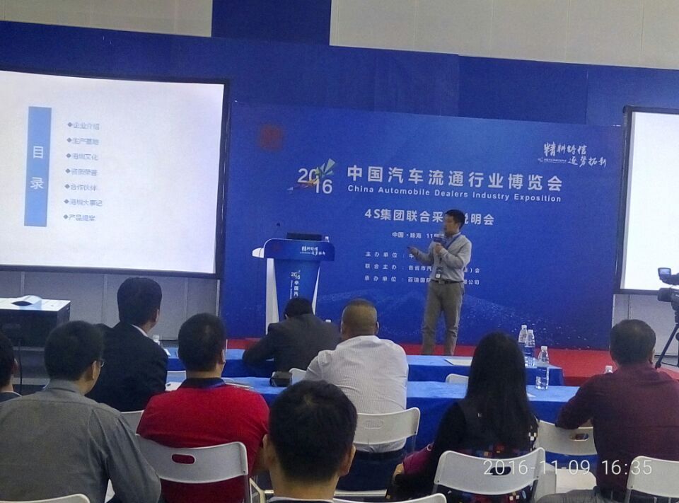 據了解,在舉辦協會(珠海)博覽會暨協會年會的同時,本屆博覽會也從提高供需效率、優化資源銜接等服務的務實角度出發,舉辦以北京運通、吉林長久、山東遠通、祥龍博瑞等4S店集團為代表采購說明會,并邀請了所有與4S店集團存在潛在業務合作和共同發展的供應商一起參加了說明會。海圳專車專用記錄儀應邀參加了部分采購說明會并向與會嘉賓展示了公司的技術實力和拳頭產品。