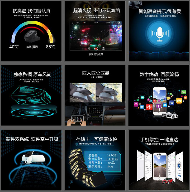 海圳隱藏式專車專用記錄儀,以“讓愛安全回家”的品牌使命感,在產品創新和技術迭代上盡自己全力,海圳安全版系列產品,以其過硬的品質和人性化的功能設計,踐行者“讓愛·安全回家”的海圳使命。